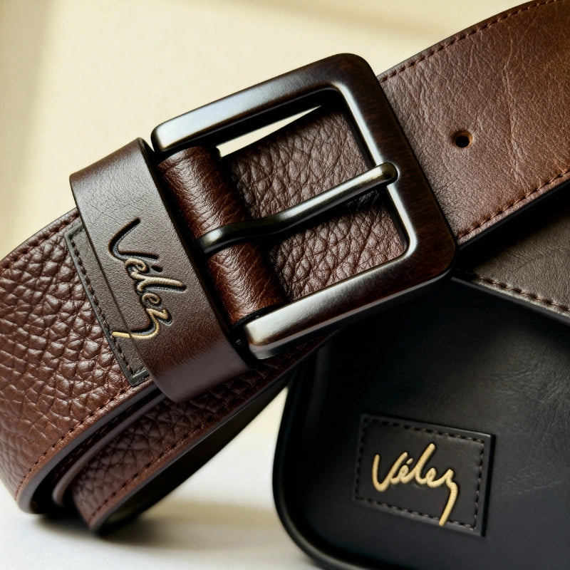 Piel en cuero con textura genuina. Hebilla de acero pulido que no se pela. El equilibrio perfecto entre flexibilidad y durabilidad.